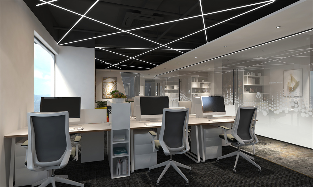 開方式辦公區(qū)員工常規(guī)比較密集,經(jīng)常有員工反映“燈下黑”的現(xiàn)象,所以在敞開辦公區(qū)燈光設(shè)計(jì)時建議選擇多方位,多角度燈光設(shè)計(jì),提倡無主燈概念,區(qū)別于以往傳統(tǒng)只靠一盞主燈完成整個空間照明功能的一種設(shè)計(jì)方式,采用用不同燈具搭配,利用分區(qū)組合的方式完成空間照明功能的方式。避免了強(qiáng)光直射的不適感,視覺上更具美感,在空間劃分上,也起到一定視覺輔助作用。既解決了“燈下黑”的照明弊端,在視覺上又不會分隔空間,并不會因此顯得雜亂無章,給人以壓抑感。