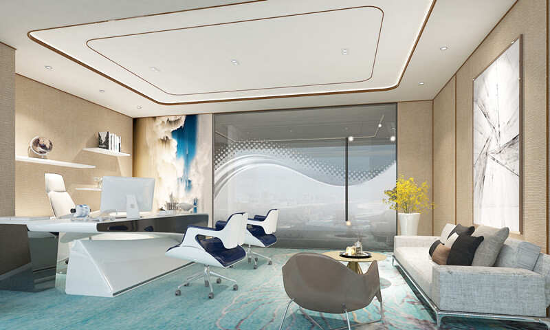 而常用的冷色系藍色、綠色和青色;藍色則代表平靜、永恒、理智、深遠等,使用藍色會使人感到平靜且嚴肅,因此藍色在辦公室裝修過程中大多用于會議室、洽談室這些嚴肅的會議區(qū)域;